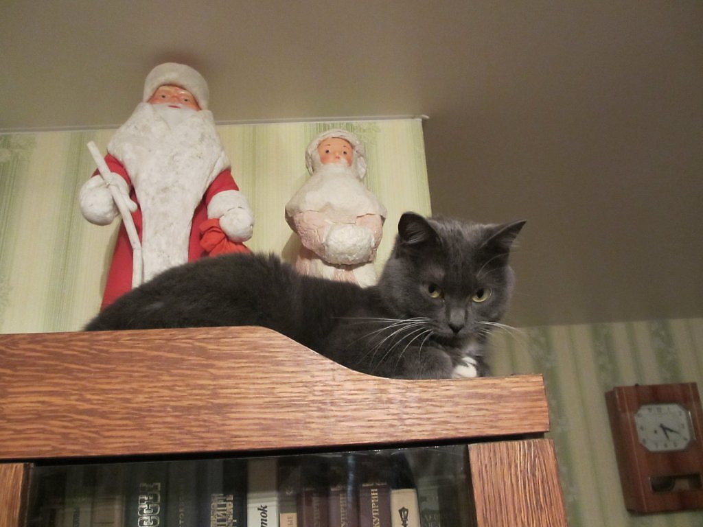 К на кот в гости приезжает иногда. Так я все удивляюсь: как он на шкафы запрыгивает. Звези одним словом) У Вашего там явно место уже родное. А дедушка с внучкой не помеха вовсе. Удачи Вам!