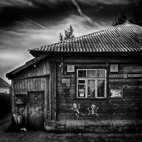 Хорошо бы, чтобы долгожданного письма дождались-таки, прежде чем такое почтовое отделение обратится в руины! Чёрно-белый стиль тут уместен! |