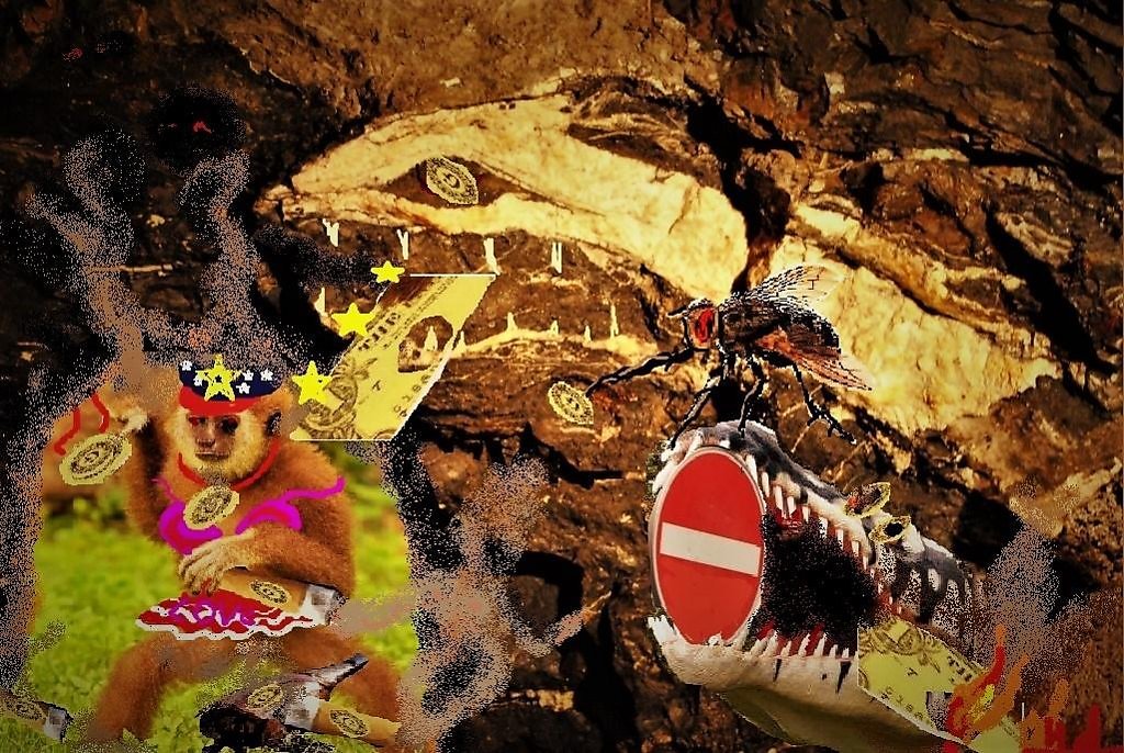 крокодил(снизу, со знаком STOP в пасти) - рукотворный монстр из парка страшнилок с динозаврами.