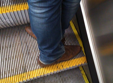 Ехал в метро, зашёл на эскалатор, обгоняет парень и шмыг между мной и впередистоящим. Встал и уткнулся в телефон. Я опустил глаза и увидел такую картину, не удержался и сфоткал.