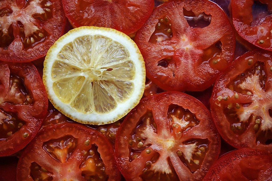 А ведь это замечательная идея,посреди желтых помидоров красный грейпфрут)))))))))))