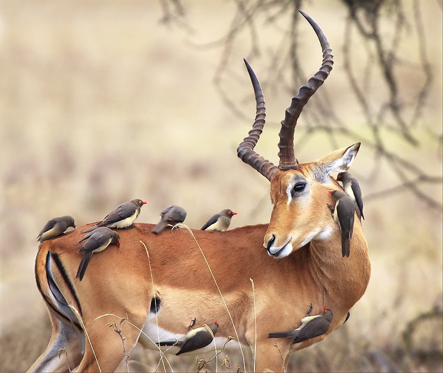 Взаимопомощь, средь людовищ подзабытая: "Пернатый, помоги парнокопытному!" |