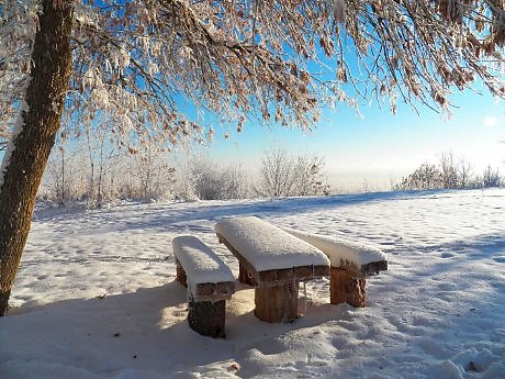 Хорошо. Жалко что пока на этих лавочках не посидишь - запросто можно замёрзнуть, и покрыться инеем.