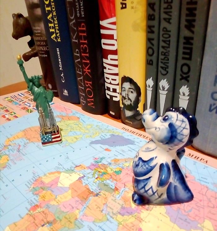 Хорошая идея, только я бы слона поставил на месте америки, а на месте России медведя