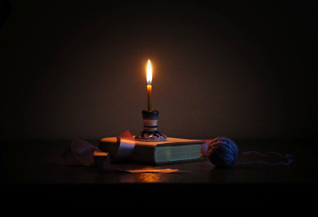 Жизни нет - свеча поставлена на книгу! Ни с того ни с сего клубок и всё по центру