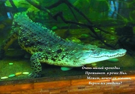 Оригинально и весело! Даже крокодил улыбается! Прекрасный каст и объект необычный, а то все кошечки, кошечки...