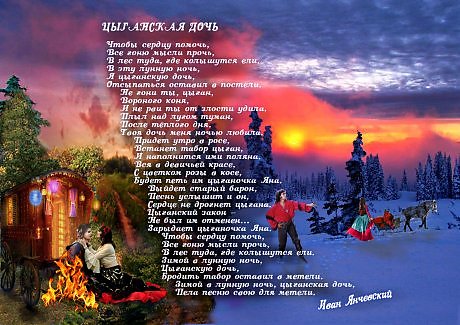 Тема цыганской воли и цыганской любви волновала поэтов России. В этой теме есть что-то притягательно-мистическое. Так что тема выбрана удачно)))))