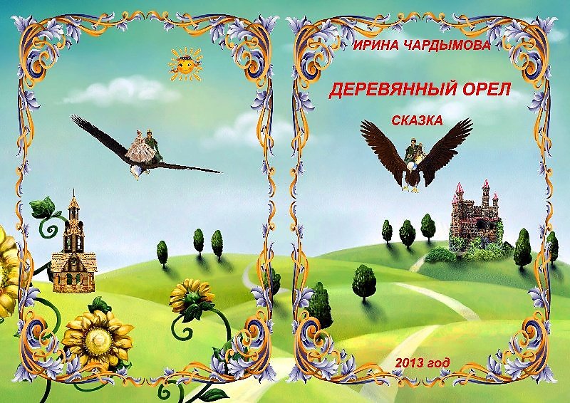 На русскую сказку « Деревянный орел» я написала в стих для своей внучки и для других детей. Сделала к ней картинки и сама сделала книгу.