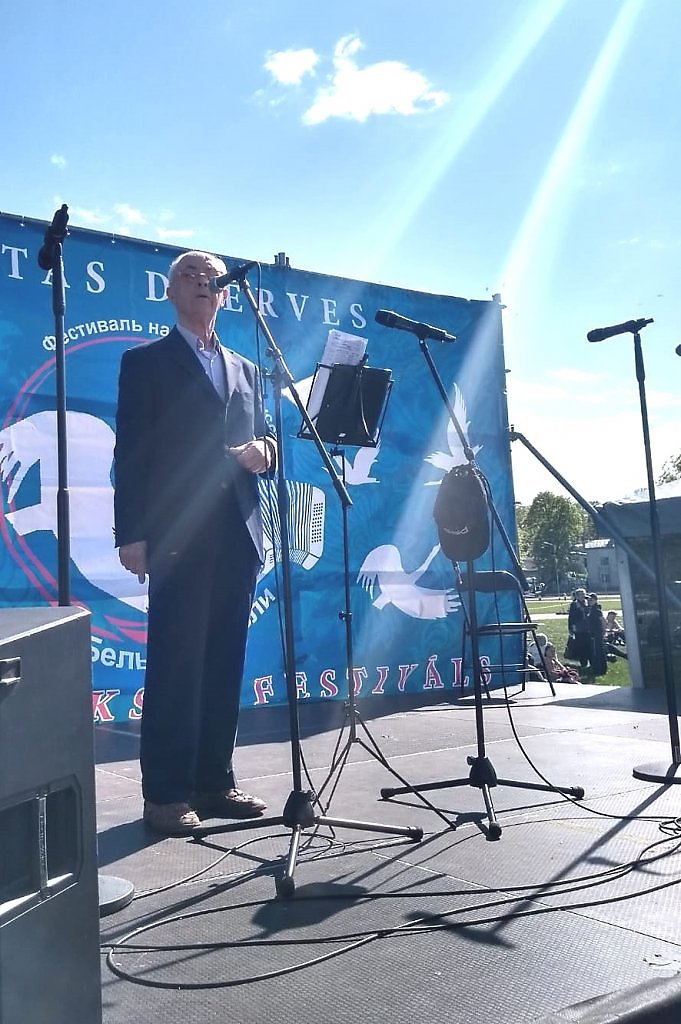 На фото: Я выступаю на площади Победы у памятника освободителям 09.05.2019