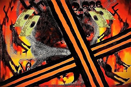 в Украине: наследнички Ади Гитлера. Они этого и не скрывают, да макаки без очков в белых хоромах и бараках не видят горилл с гранатами... |