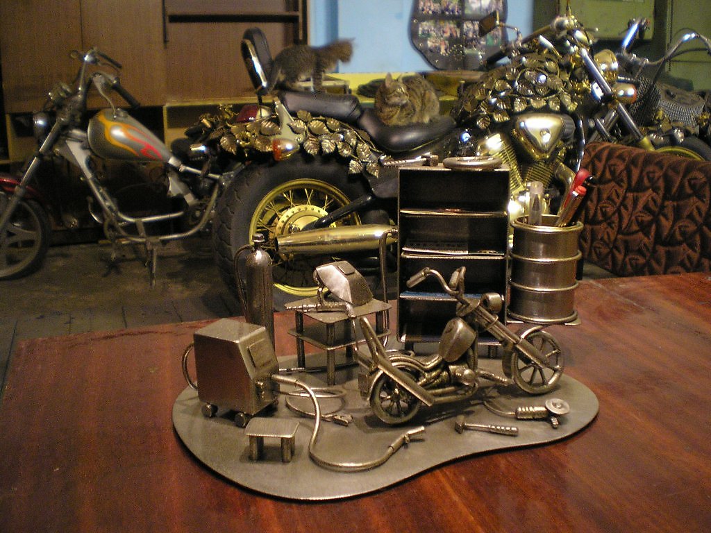 Сделано с любовью к своему занятию! И дружище молоток! и сварочник! и болгарка! и стульчик! и бочка! и байк! - всё смотрится одним букетом!!!!!!!!!! 10 баллов!