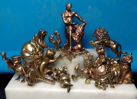 Композиция не пытается вплетаться в сумбурную аллегорию Петергофского фонтана. Здесь не важно, кто и как унизил царя зверей. Сюжет ближе басне «Лев и Осёл», но здесь показан более широкий спектр «общественных» реакций на происходящее.